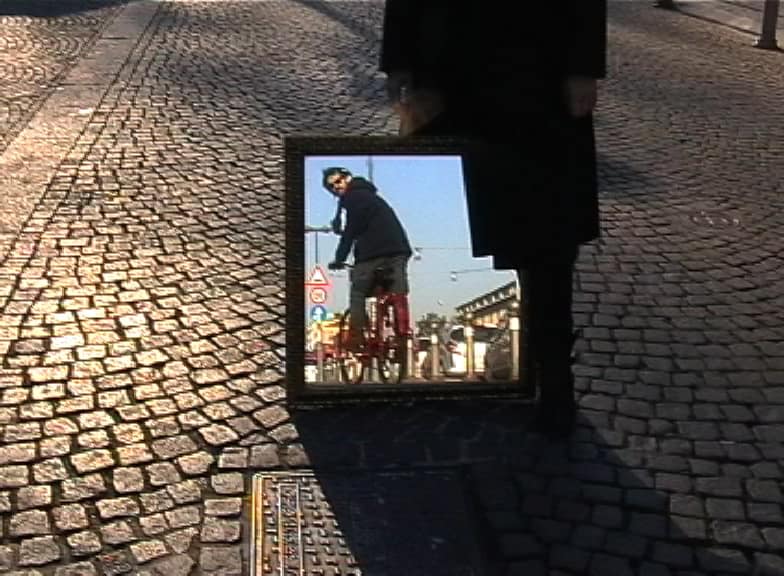 “La realtà non è mai la stessa, e ogni volta che la guardiamo la vediamo in modo diverso, ma è sempre quella che ci permette di scoprire cose nuove.” (Italo Calvino, Le città invisibili) Questo video è stato presentato presso la Galleria Oltredimore in occasione del Re-Birth Day, un progetto parte de Il Terzo Paradiso, ideato dall’artista Michelangelo Pistoletto, volto a creare un equilibrio autentico tra natura e artificio. L’installazione “Infinito pensarsi” include, oltre al video, un progetto di design con oggetti specchianti e un banner. Il tema della città, intrecciato al simbolismo dello specchio come espressione di infinito, emerge nelle immagini riflesse di Bologna. Roberta Cavallari attraversa la città con uno specchio in mano; per citare Italo Calvino, “la realtà non è mai la stessa”. Lo specchio la astrae, la moltiplica e ne amplifica il pathos, esprimendo verità e natura senza artifici. Ogni frammento riflesso è al tempo stesso unico e immenso, mentre spazio e tempo si dilatano attraverso la luce, variabile fondamentale del video. Lo specchio diventa così una metafora della trasformazione continua della realtà, invitando a cogliere ogni dettaglio come parte di un tutto in divenire.